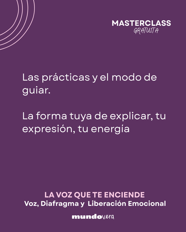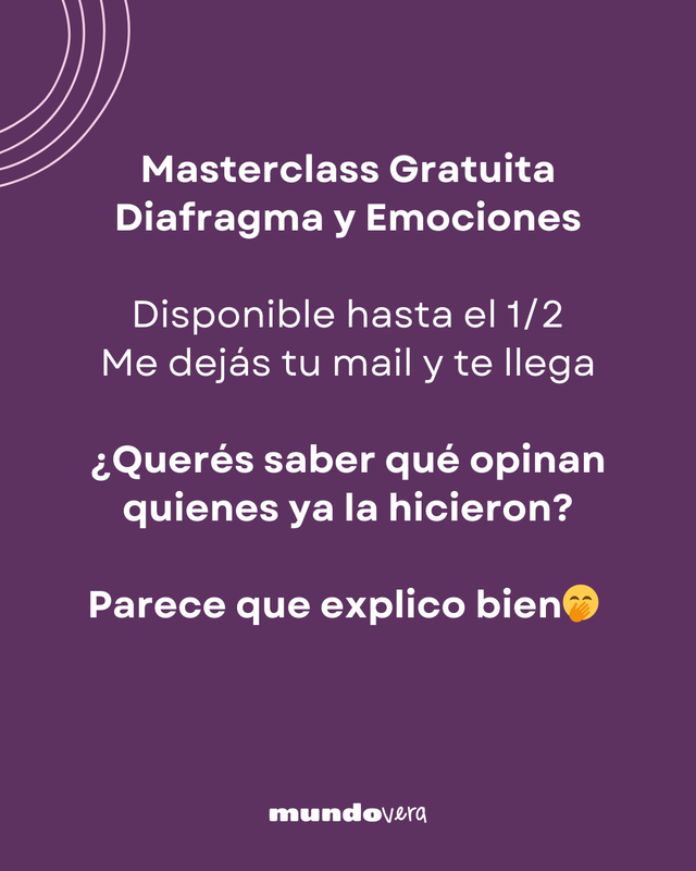 En esta masterclass vas a reconocer y liberar lo qué está trabando tu respiración, los patrones que limitan tu sentir, eso que percibís como límite y no sabés qué es, dónde está y cómo cambiarlo. Bueno, lo vamos a MOVER!!!!!